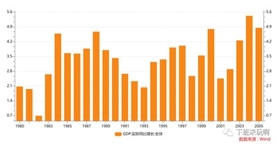 房价上涨拉动了消费(财富效应)和投资,加上美国经济复苏的拉动,主要经济体出现不同程度的复苏。按国际货币基金组织的统计,2004年全球实际GDP增速5.4%,为1980年以来的最高值。