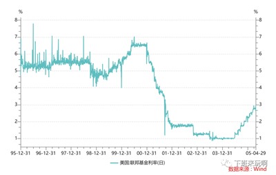 2000年,美国互联网泡沫破灭,经济受到巨大冲击。为了对冲经济下滑,美联储执行宽松货币政策,美元进入降息周期。