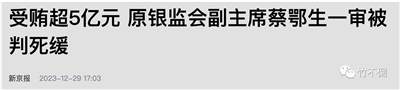 原银监会党委委员、副主席蔡鄂生受贿超5.1亿元,被判死缓。这还是建立在他履行监管职责过程中,滥用职权,致使国家利益遭受重大损失,情节特别严重的情况下,才数罪并罚判到的。