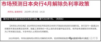 1月9日,日本共同社也报道称,市场预测日本央行4月解除负利率政策。