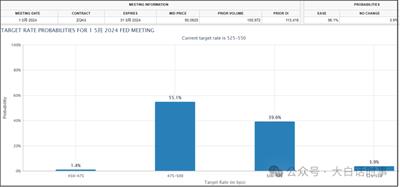 目前市场预期美联储5月降息的概率是96.1%,不降息概率只有3.9%;