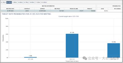 不过,芝商所的美联储观察工具显示,市场预期美联储3月降息的概率已经达到61.4%,不降息概率是37%;