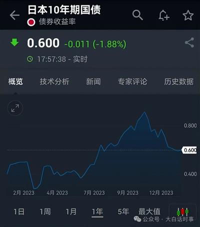 表现为,10年期日债收益率从去年4月就一路从0.3%,上升到10月的0.9%,最近才回落到0.6%;