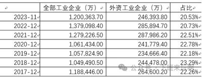 以工业企业营业收入看,外资营业收入占比在20%以上。