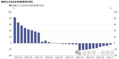 实际上,我国规模以上工业企业的利润总额,在2023年所有月份都是同比下滑的。
