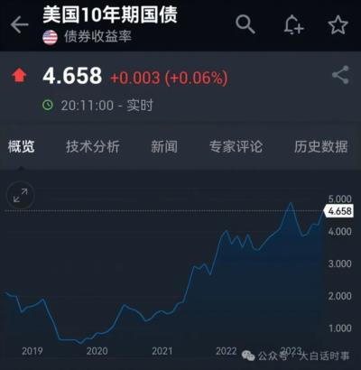 美国现在是国债收益率持续上行,10年期国债收益率从2020年0.5%的历史低点,一路上升到现在4.6%