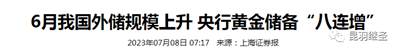 7月7日国家外汇管理局公布的统计数据显示,中国6月末外汇储备为3.193万亿美元,黄金储备为6795万盎司(约2113.48吨),较上5月末的6727万盎司(约2092.33吨),环比增加了68万盎司(约21.15吨),为第八个月持续上升。