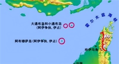其中阿布穆萨岛偏向于波斯湾南岸的阿联酋一侧,大小通布岛偏向于伊朗一侧。