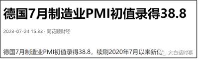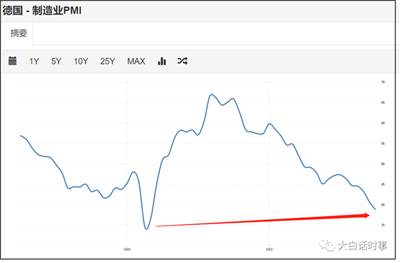 德国最近公布的经济数据很糟糕,比如德国7月制造业PMI居然只有38.8。