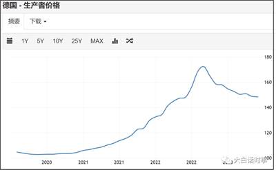 如图所示,德国当前的PPI,仍然比2020年的低点,高出约50%,仍然还是相当高的水平。