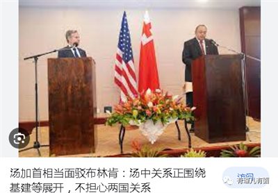 在与汤加首相索瓦莱尼会谈后的联合记者会上,布林肯信誓旦旦的表示,美国致力于同汤加以及泛太平洋岛国发展关系,决心成为强有力的合作伙伴。汤加等国不必在美国和中国之间做出选择。美国不反对包括中国在内的任何其他国家对汤加的投资或参与基建。