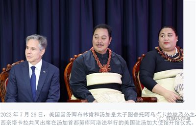 几天前,7月26日,布林肯正式出发,造访了南太平洋岛国汤加,他由此成为首位访问该国的拜登内阁成员。这也是布林肯上任三年多时间来,第三次访问太平洋岛国。布林肯坦诚的说,此行目的很简单。一是出席美国驻汤大使馆落成,二是强化美、汤友好关系。