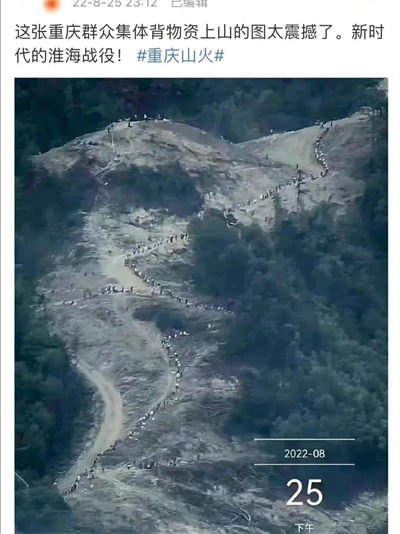 当地所有军力和警力都出动,再加上数万群众集体背物资上山的支援,才在八天时间内把重庆山火给硬生生的灭掉了。