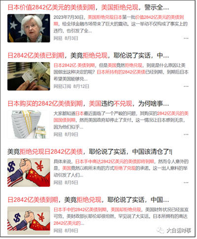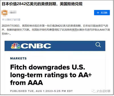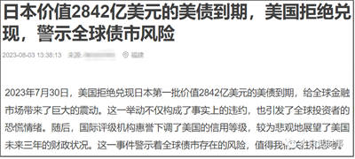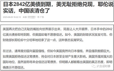在8月7日,有据称是某经济媒体的首席评论员,也发了文章称美国赖掉日本7月到期的2842亿美元的美国国债。