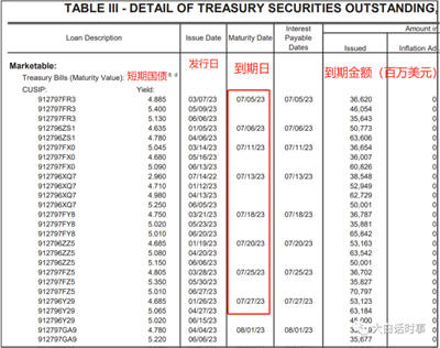 除此之外,美国7月到期的通胀保值债券总金额是410亿美元,7月到期的浮动利率票据是827亿美元。