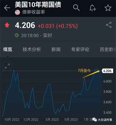 美国10年期国债收益率,7月至今,也只是从4%收益率,涨到现在4.2%收益率。