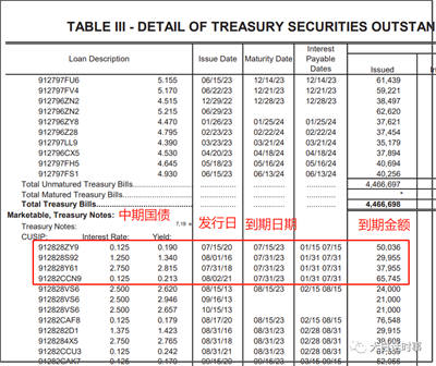 美国每个月有一份“美国财政部公共债务月度报表”,其中会详细列出美国持有的所有美债到期情况。