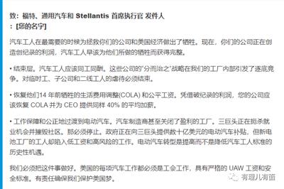 得益于他们的数据,原本可能已经做好“漫天要价落地还钱”准备的汽车工人,会因为自己的合理要求有了充足的数据支撑变得更加坚定,以至于纵使此刻“三巨头”已经表示愿意涨薪20%都没能令他们满意。