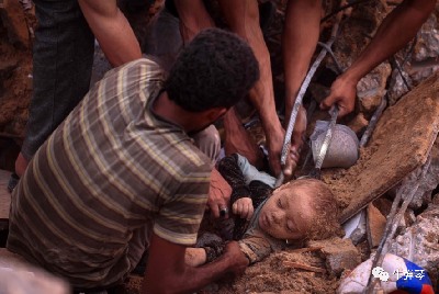 看现场的图片和视频,几十间房屋被夷为平地,地面是很多个深达数米的大坑,我们还可以看到坑里横陈的尸体,一些小孩子被紧急扒出来,身上满是鲜血和碎渣……