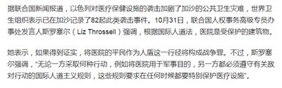 不过人权高专说“即使有将平民作为人盾,将医疗设施军事化的战争罪行为,但是进攻方依旧有保护医疗设施的责任。”