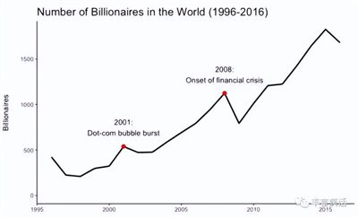 2008年全球金融危机以来,亿万富翁的数量增加了一倍多。瑞士信贷银行称,在2018年创造的所有新财富中,最富的1%人口得到了其中的82%。