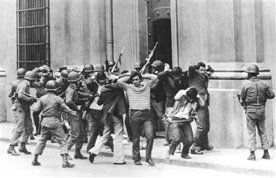 1973年9月11日,皮诺切特在美国的支持下指挥军队包围总统府,杀害了萨尔瓦多·阿连德。随即皮诺切特建立军政府,中止执行宪法,解散国会,执行严厉的言论检查,取缔所有政党,暂停一切政治活动。