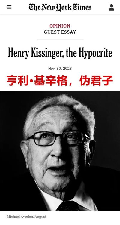 《纽约时报》甚至在头条直接怒斥基辛格是“伪君子”。