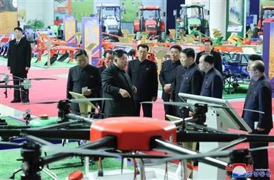 朝鲜劳动党总书记、朝鲜民主主义人民共和国国务委员长金正恩同志1月2日察看了农机展场。