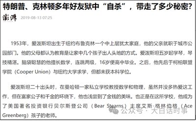 此外,我们还可以从爱泼斯坦的成长经历去剖析,爱泼斯坦与犹太资本的关系。