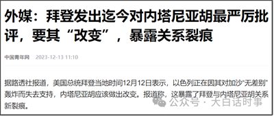 拜登在12月12日批评内塔尼亚胡,拜登表示,以色列正在因其对加沙“无差别”轰炸而失去支持,内塔尼亚胡应该做出改变。