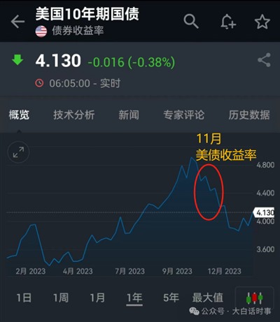 从下图可以看到,11月美债收益率有一波较大的回落,意味着债券价格出现较大反弹。
