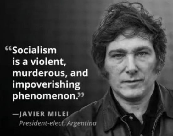 这位圣人,就是阿根廷总统米莱,这位老兄,治国不行,吹牛确实是一流水准,他在达沃斯世界经济论坛2024年年会发表了一番“高调讲话”,自称是“无政府资本主义者”,一边赞扬“自由主义”,一边又抨击“社会主义”。同时,他警告“西方正处于社会主义蔓延的危险之中”,指责西方领导人抛弃了“西方价值观”,背叛了“自由主义”。