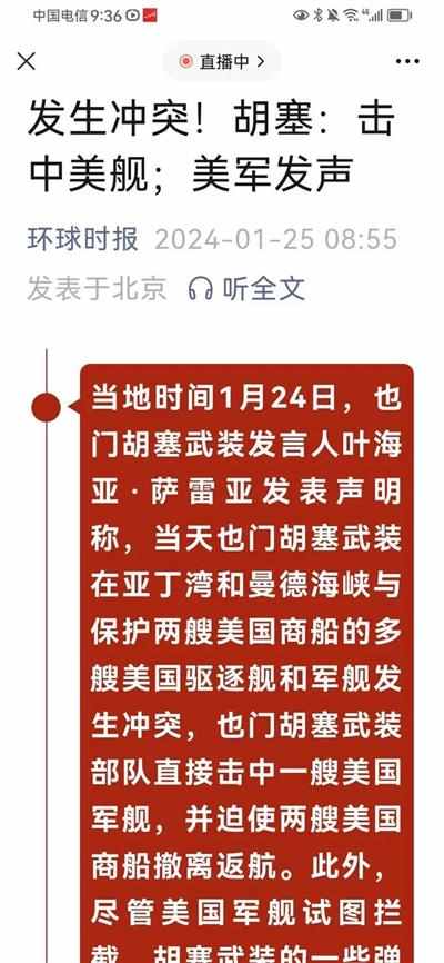 从美国和英国开始空袭胡赛开始,已经快要两周了,在1月23日,美国还发起了一次大规模空袭,英国首相还发表了很强硬的演讲。