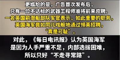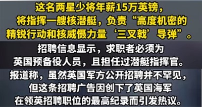 英国皇家海军确实进行了公开招聘,因为军队缺个少将负责管理核潜艇和洲际核导弹???