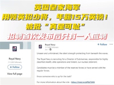 2024年1月,根据英国《泰晤士报》、《每日电讯报》在5日的报道,英国皇家海军在职业社交平台领英上发布了一则年薪15万英镑的海军少将招聘广告。