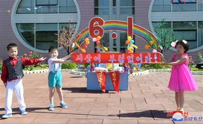朝中社平壤6月1日电 让孩子们笑逐颜开、茁壮成长的社会主义大家庭充满着幸福儿童的喜悦。