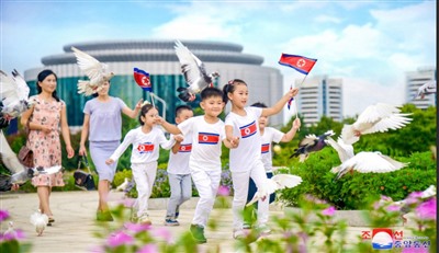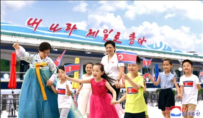 在推崇儿童为国家之王,给他们提供世上最好的东西,精心加以培养的我们社会主义制度——母亲党缔造的温馨家园里,世上无所羡慕地成长的孩子们的幸福面貌,作为资本主义无法模仿也无法具有的我们朝鲜式社会主义形象,更加鲜艳夺目。