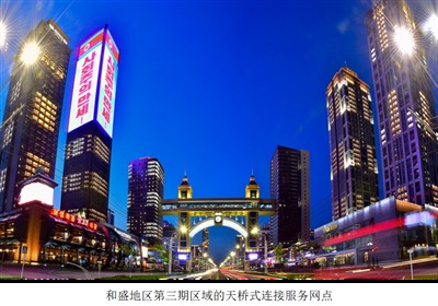 建筑基层的服务建筑也样式新颖独特,和盛大同江啤酒店和天桥式连接服务网点建筑给人印象深刻。