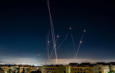 当地时间2025年6月21日,以色列特拉维夫,以色列防空系统拦截了伊朗向以色列中部发射的弹道导弹。视觉中国 图
