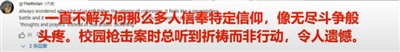 有人说:“一直不(理)解为何那么多人信奉特定信仰,像无尽斗争般头疼。校园枪击案时总听到祈祷而非行动,令人遗憾。”