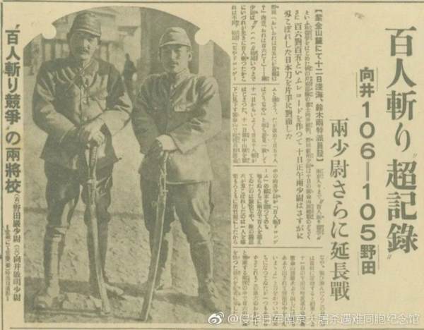 据澎湃新闻报道,1937年在攻占南京前后,与向井敏明进行了骇人听闻的杀人比赛,野田毅使用军刀野蛮地砍杀了中国军民105人。当时的日本媒体对这场“竞赛”给予了连续的大幅报道,以宣传日本军人的“勇武”。《东京日日新闻》在12月31日的报道中还配发了二人手持军刀的合影。1938年1月1日,上海租界的英文报纸《密勒氏评论报》转载了《东京日日新闻》刊载的向井敏明、野田毅二人杀人竞赛的消息,随后其他外国媒体也做了转载报道。1938年1月25日,《申报》(汉口版)也以《紫金山下杀人竞赛敌兵惨绝人寰》为题,转载了《密勒氏评论报》对“百人斩”的报道。同日,武汉《新华日报》也刊发了题为《南京紫金山下杀人竞赛,寇军暴行惨绝人寰》的报道。