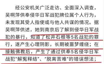 也就是说,吴啊萍是觉得有日军的“恶鬼”在纠缠自己,才供奉了它们的灵牌,希望靠做法事的方式,求它们赶紧离去。