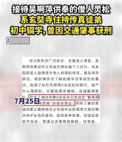 今天,又有记者曝出,在南京玄奘寺的社交账号中,曾多次提及灵松——就是2017年接待吴啊萍供奉的当值僧人,经常以玄奘寺代表的身份出席社会活动,在寺内则负责为他人供灯祈福等业务,已被撤换的住持传真还撰文称其为徒弟。
