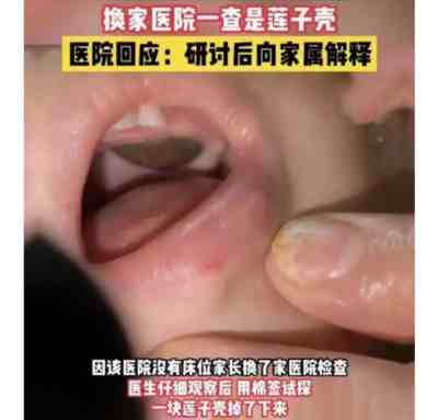 这时,张先生的妻子突然恍然大悟,之前确实给孩子吃过莲子,想必一定是当时不慎,莲子壳被孩子吃到嘴里,卡在了口腔上。
