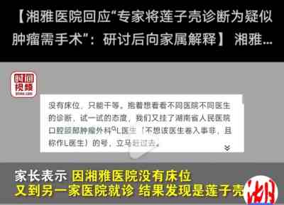 气的是,像湘雅这样全国知名的大医院,里面的专家居然如此不专业,把一片莲子壳诊断为先天性肿瘤,还要求交3万费用立即住院立即手术,这哪是治病救人,简单就是谋财害命。