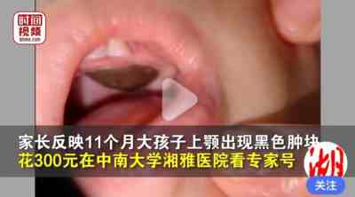 这不,湖南省长沙市的张先生因为自己才11个月大的孩子哭闹不止,才发现孩子口腔上颚有一块黑色不明物,他先是带着孩子去省儿童医院检查,由于医院没有找到原因,他就在网上花302元挂了湘雅医院的特需专家门诊。
