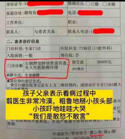 怕的是,耍不是湘雅医院住院部暂时没有床位,在办了住院后,翦专家肯定会把孩子弄上手术台手术,11月大好端端的孩子被全麻被手术,后果不堪想象。