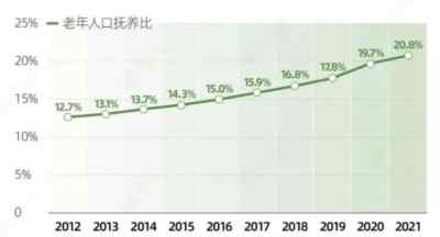 老龄化社会的标准是,60岁及以上人口占比超过10%。2021年,中国的这个比例达到18.9%。