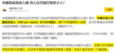北大某院院长林毅夫专家说,如果今年中国经济能实现6%的增长,2025年中国肯定能够变成高收入国家,完成人类历史的一个里程碑。