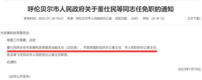 2023年1月19日,呼伦贝尔市人民政府官网发布了董仕民通知的最新任职通知: